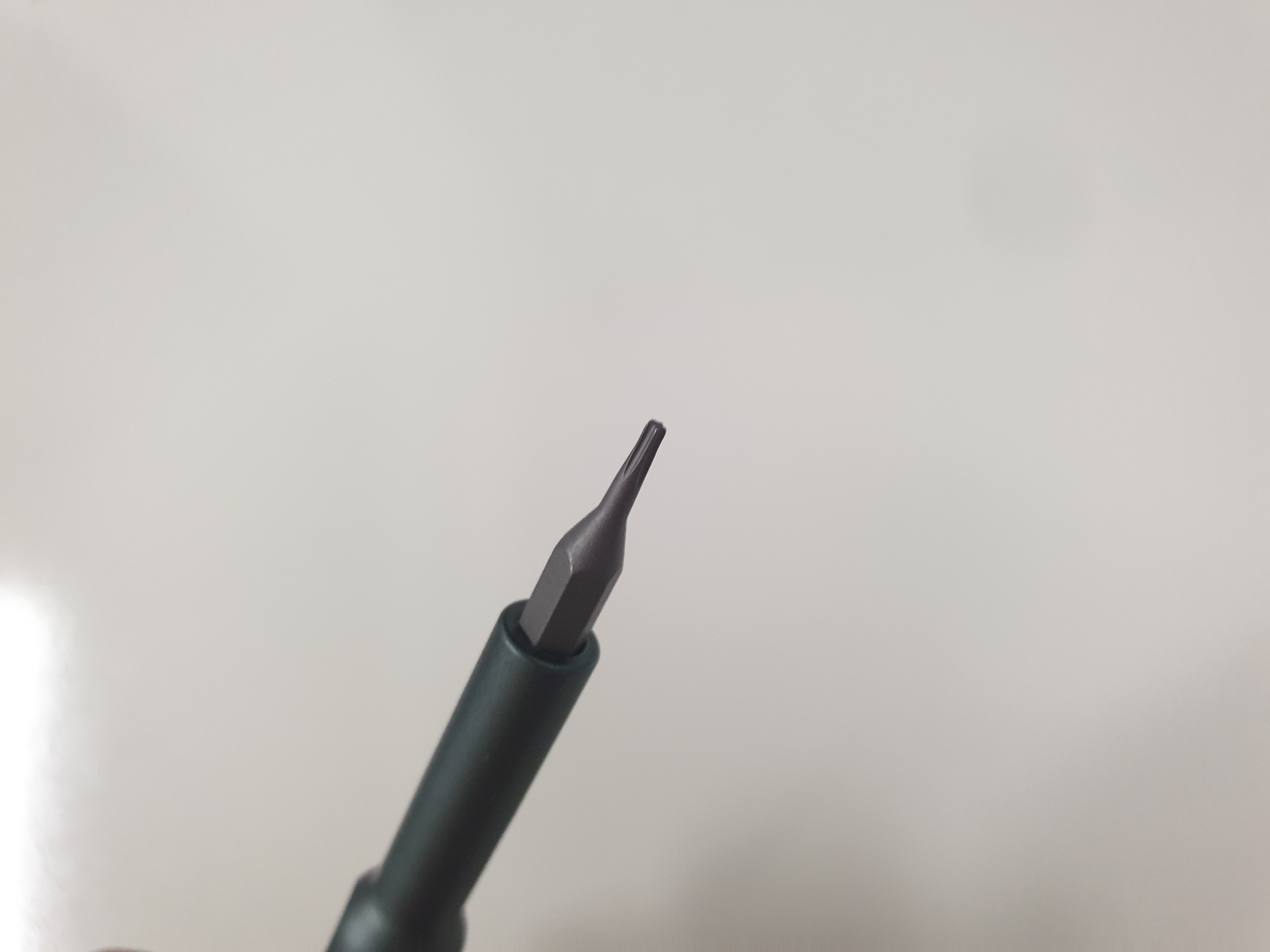 그러나 실제 맥북 나사에 꽂아보면, 살짝 공간이 남는다. 풀기에는 괜찮아 보이지만, 조일때 너무 힘을 많이 주게되면 나사 머리가 뭉게어질 것 같다.