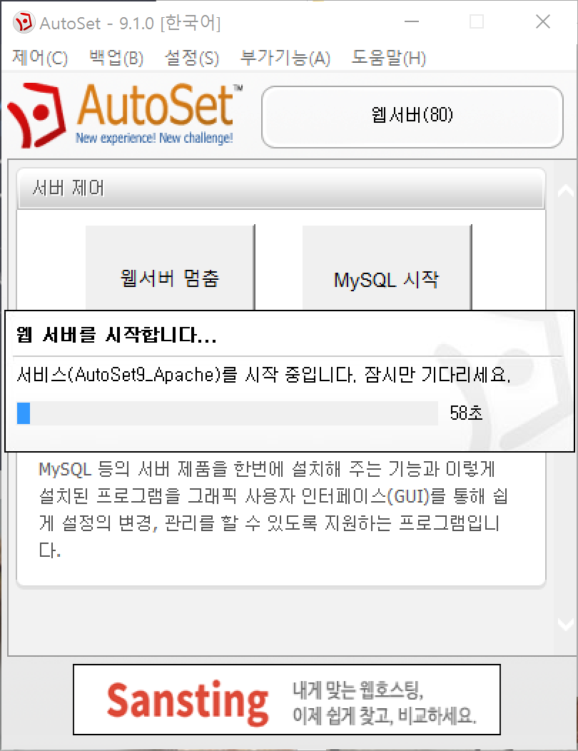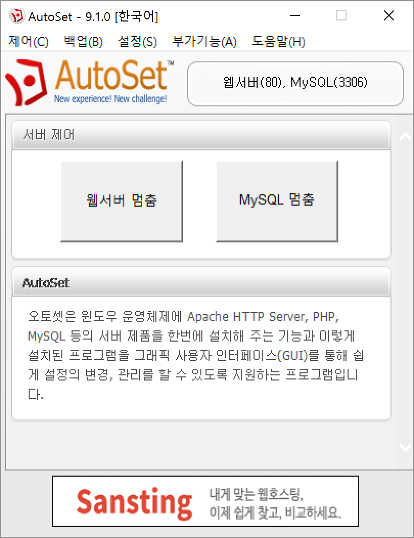 실행 방법은 진짜 apmsetup과 동일하다. 일단 autoset 매니저라는 프로그램(apmsetup monitor와 동일한 기능)을 실행하면, 아래와 같이 프로그램이 켜진다.