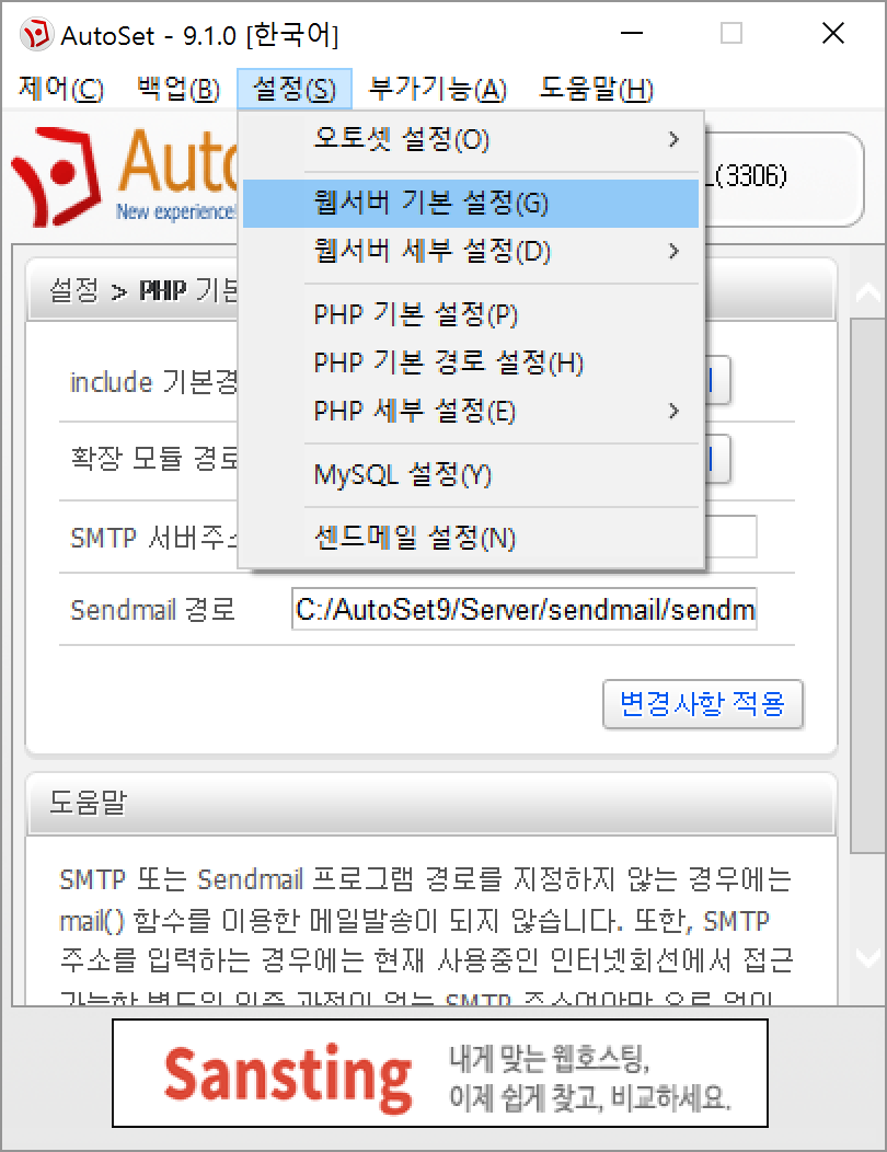 마지막으로, 웹 서버 파일 위치를 변경하는 방법은 아래와 같다. 설정 -> 웹 서버 기본 설정 -> 홈 디렉토리 변경
