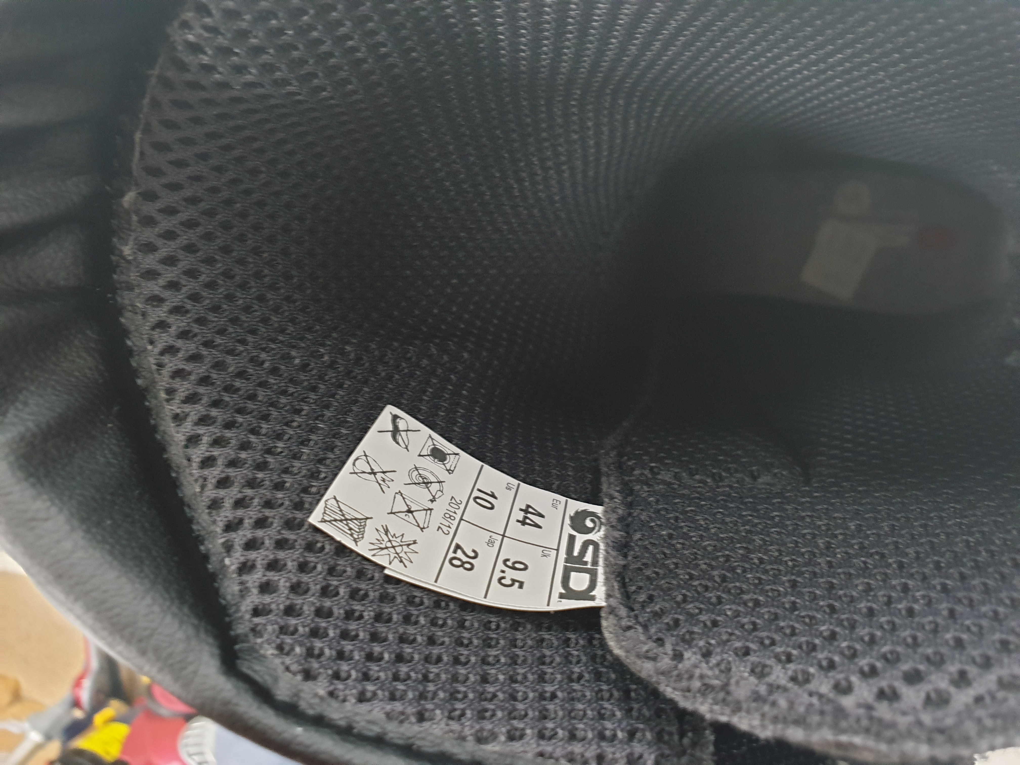 부츠 안쪽을 살피면 메쉬 구조의 안감과 택이 있으며, 깔창은 일체형이다.