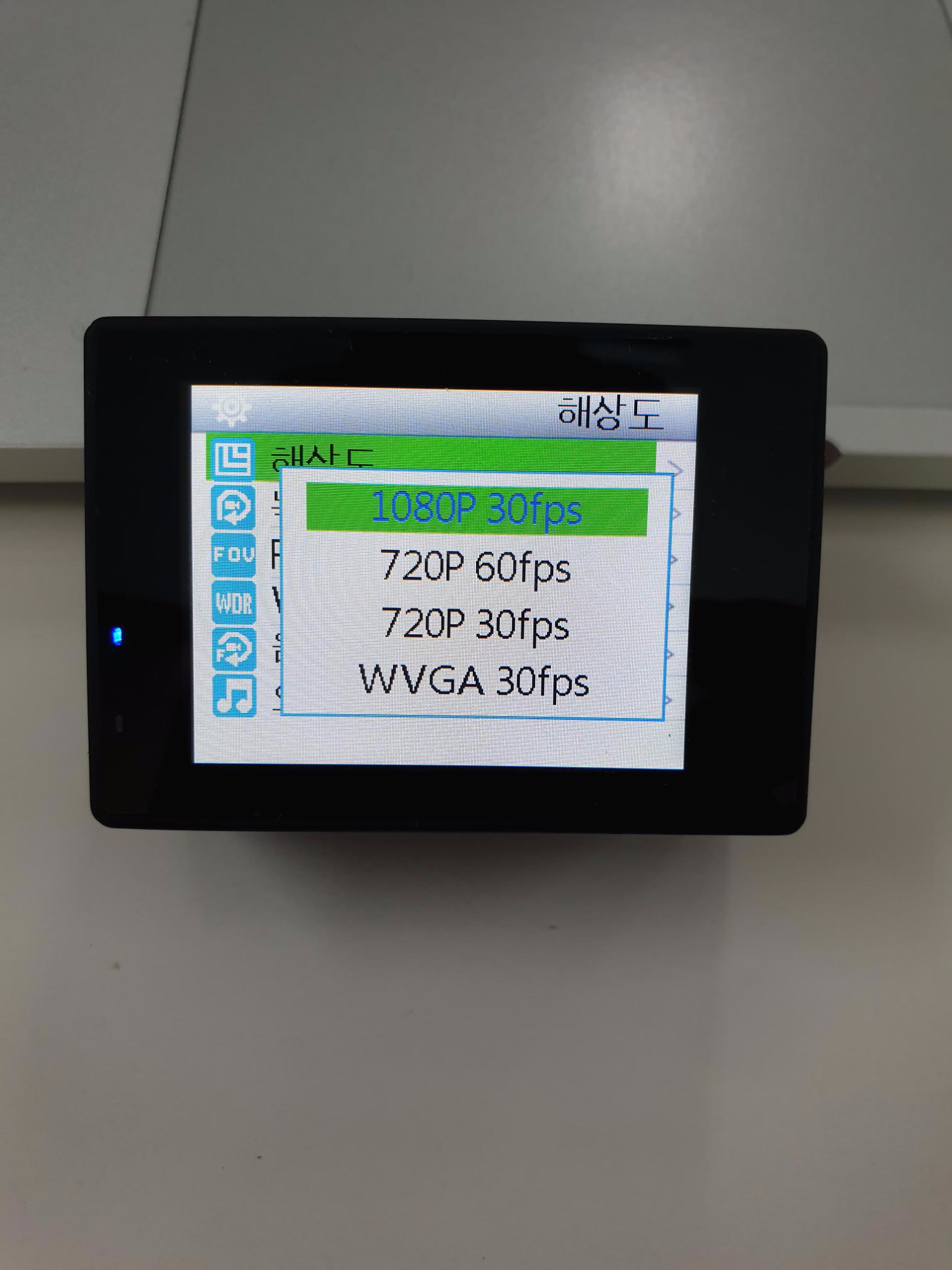 SJ4000의 지원하는 영상 해상도는 1080p 30fps/ 720p 60fps/720p 30fps이고 나는 1080을 선택했다.