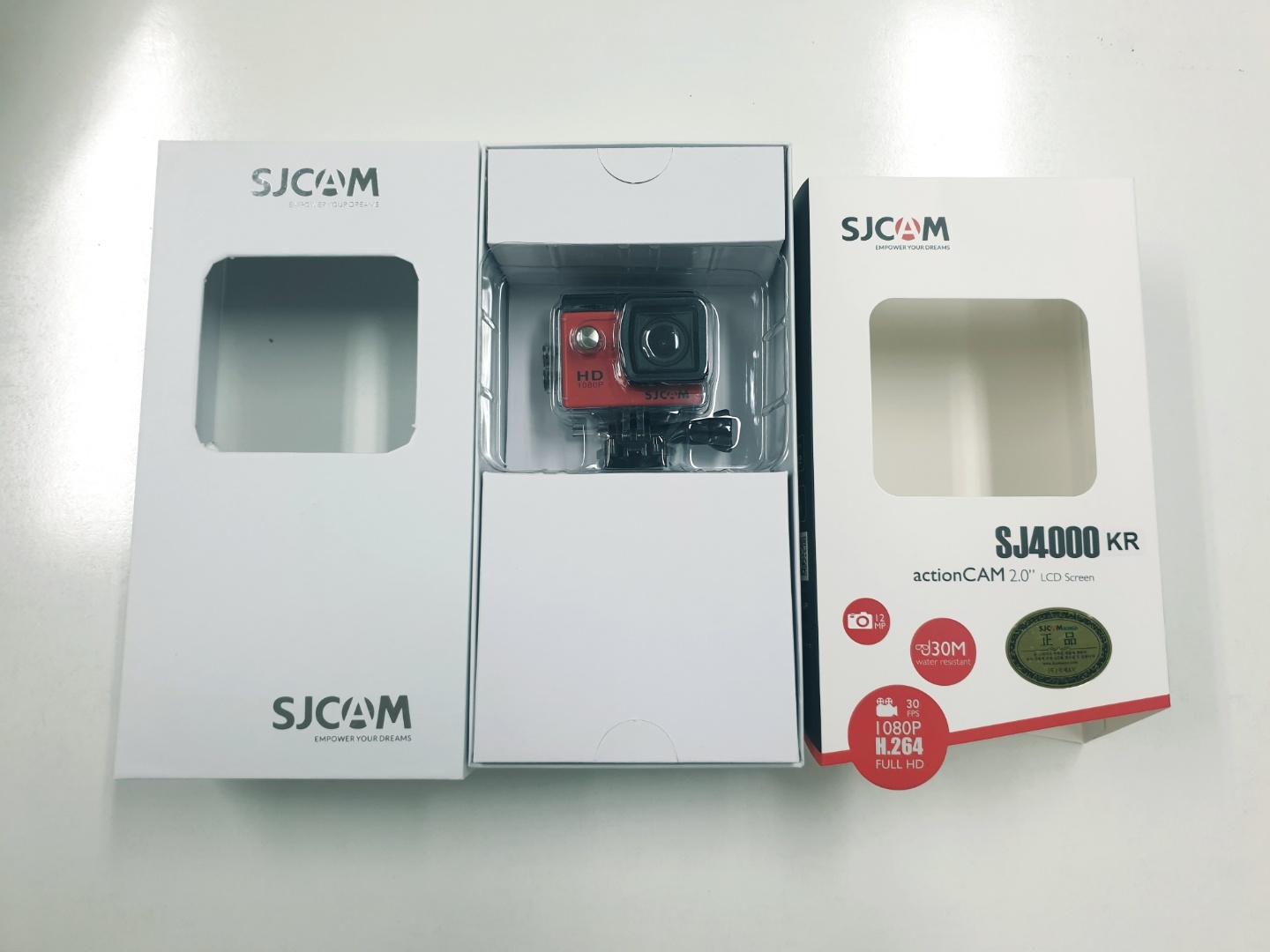 아마도 SJ4000을 수입하는 공식 수입사가 있어서 그런지 KR스티커가 모델명 뒤에 붙어있다. 정품 스티커도 있었구나..
