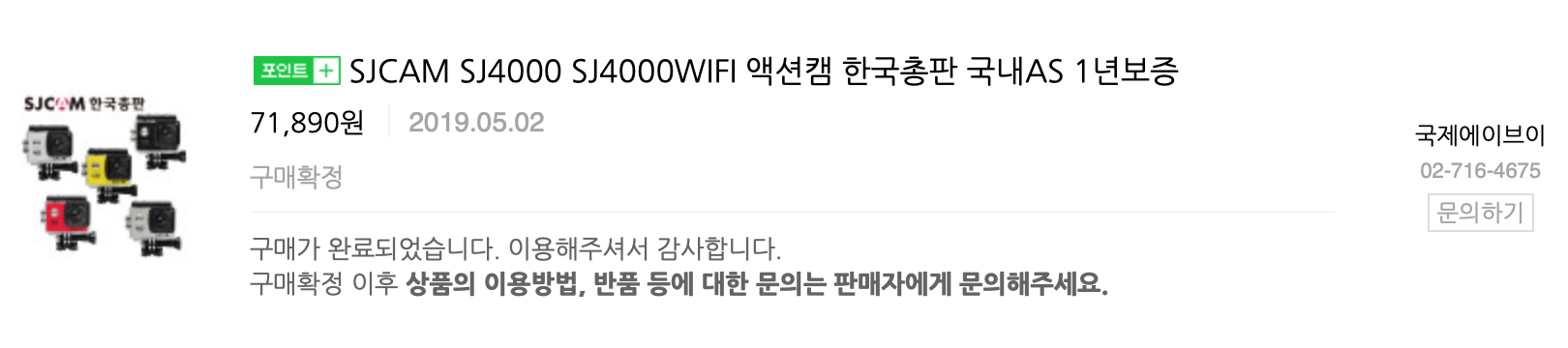 액션캠으로 가격대비 저렴한 SJ4000와 삼성 Evo plus 마이크로 SD 64GB 카드를 구매했다. 역시 국내 배송이어서 매우 빠르게 도착했다.