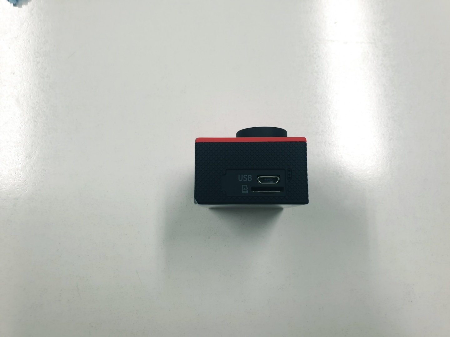 캠의 좌측면에는 USB 커넥터와 Micro SD 카드 삽입구가 있다.