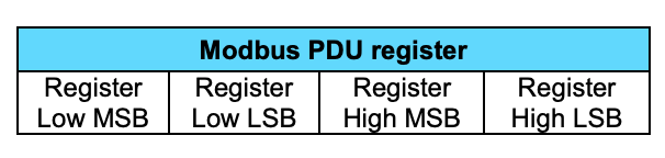 ABB사에서 제공하는 TRIO-50-TL-OUTD 인버터 통신 프로토콜 문서 9 페이지를 를 보면 Word Swapped Floating Point 32-bit(SF32)로 정의된 데이터 타입이 있으며, Modebus PDU register 형태를 보면 아래의 사진과 같이 Low word부터 표현되어 있다.