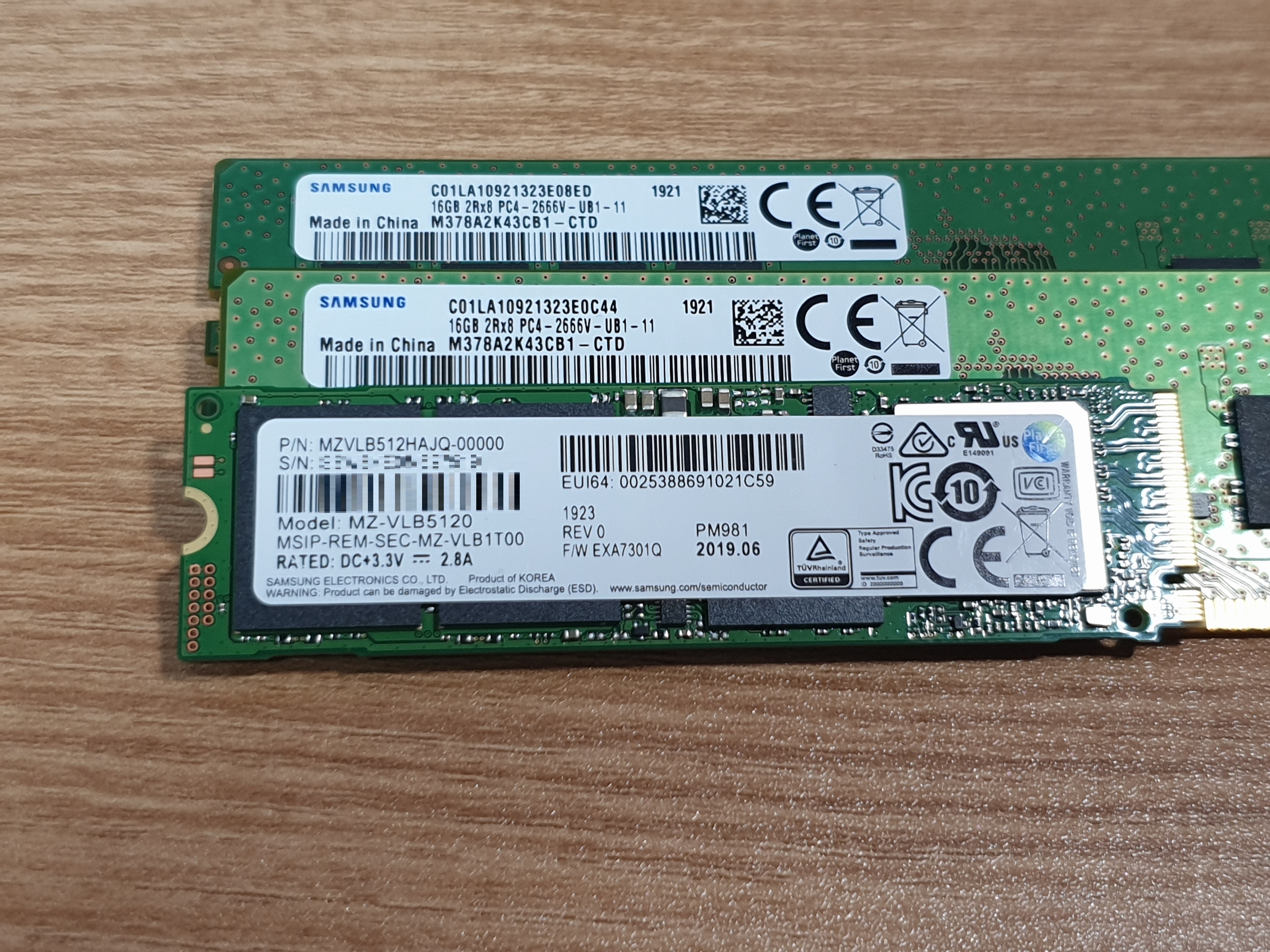PM981과 삼성 메모리를 같이 찍은 사진이다. SSD가 정말 작긴 작더라. 왜 mSATA 폼팩터를 버리고 다 M.2로 넘어가는지 알 것 같았다.