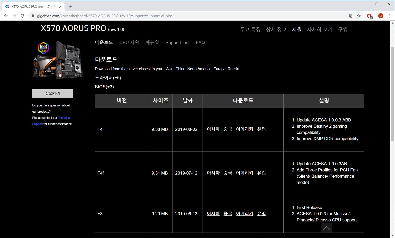 바이오스는 이 링크를 통해서 업데이트 할 수 있다.