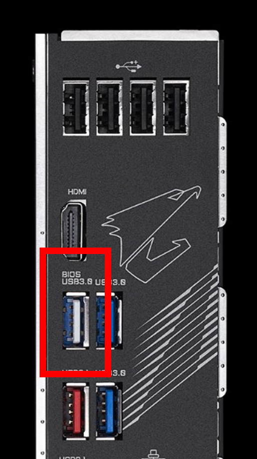 USB를 백패널 후면의 USB3.0 단자중 BIOS가 적혀있는 부분에 꽂는다.