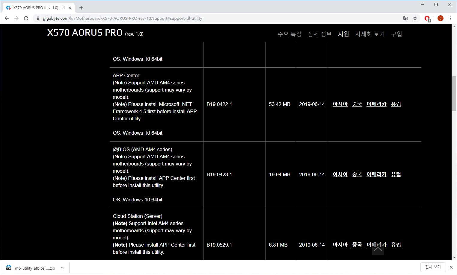 마찬가지로 위와 같은 링크의 페이지내 유틸리티에서 App Center와 @BIOS를 다운로드하면 된다. (앱 센터가 설치되어야 기타 유틸리티를 다운받아 쓸 수 있다.)