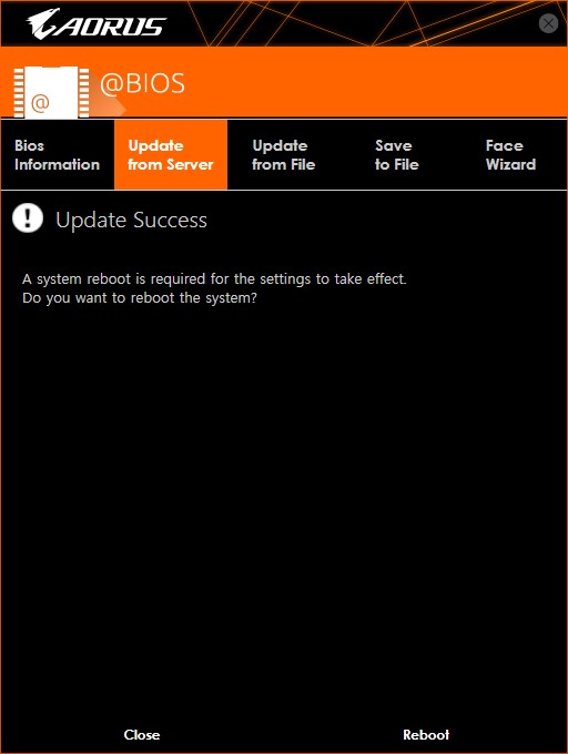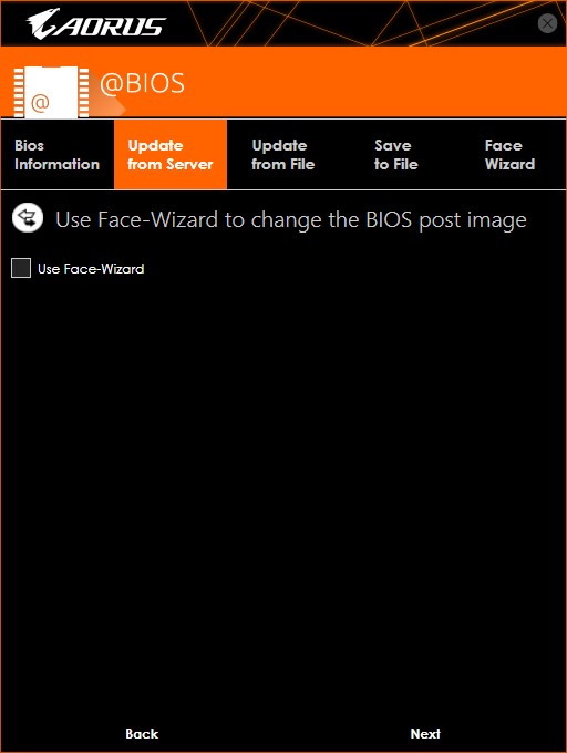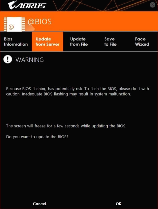 * 앞서 말한 것처럼 서버에서 바로 다운로드해서 업데이트 하려면 Update from Server 탭을, 이미 다운로드된 바이오스를 쓰고 싶다면 Update from File 탭을 선택하면 된다.