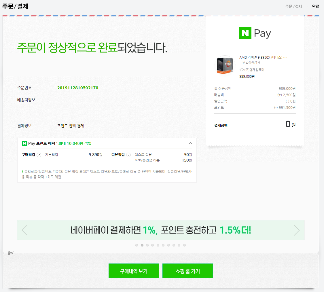 홍보가 아니고 네이버 페이를 통해서 2.5% 할인 받기 위해서 이곳에서 구매했을 뿐이다. (추가 할인 스폰서 환영)