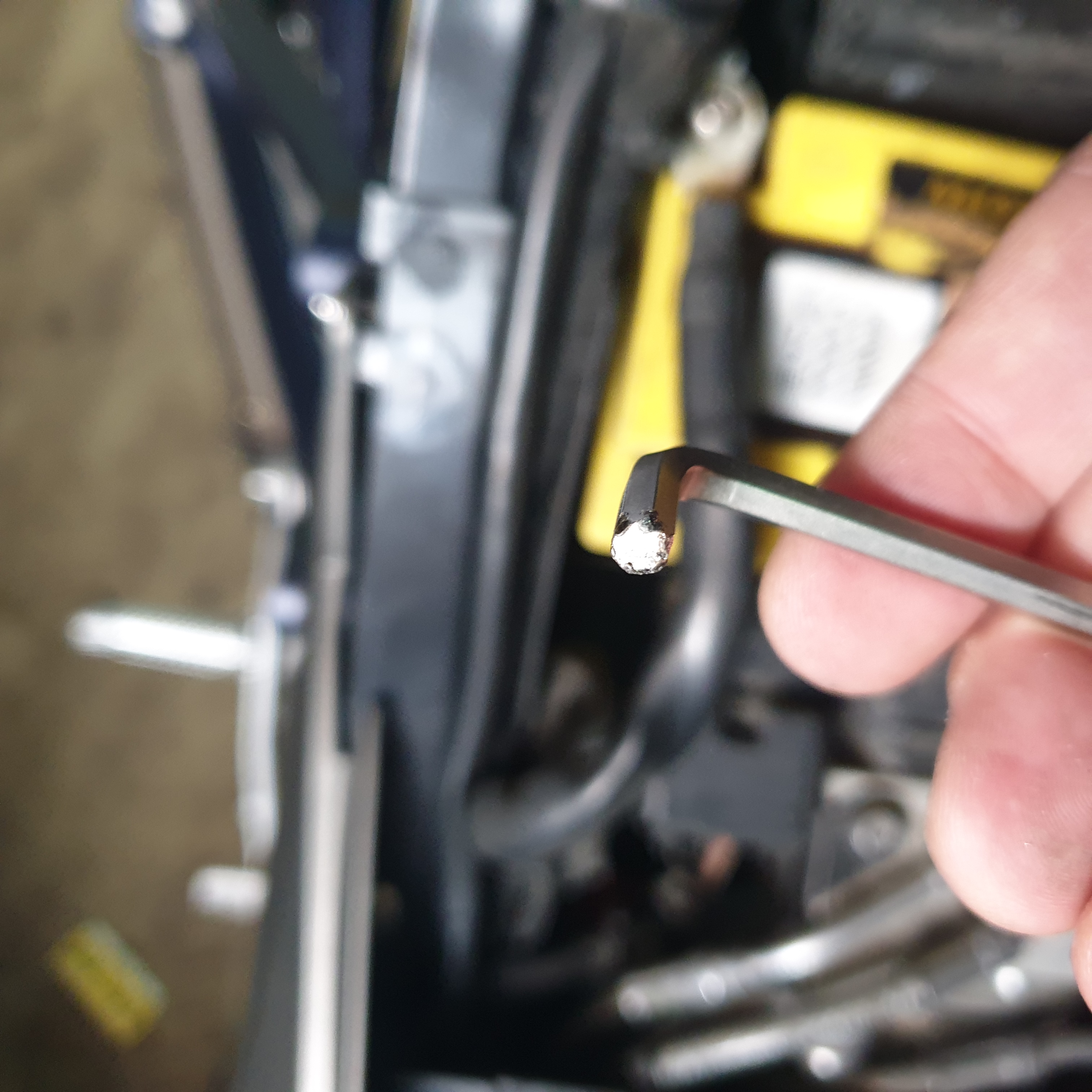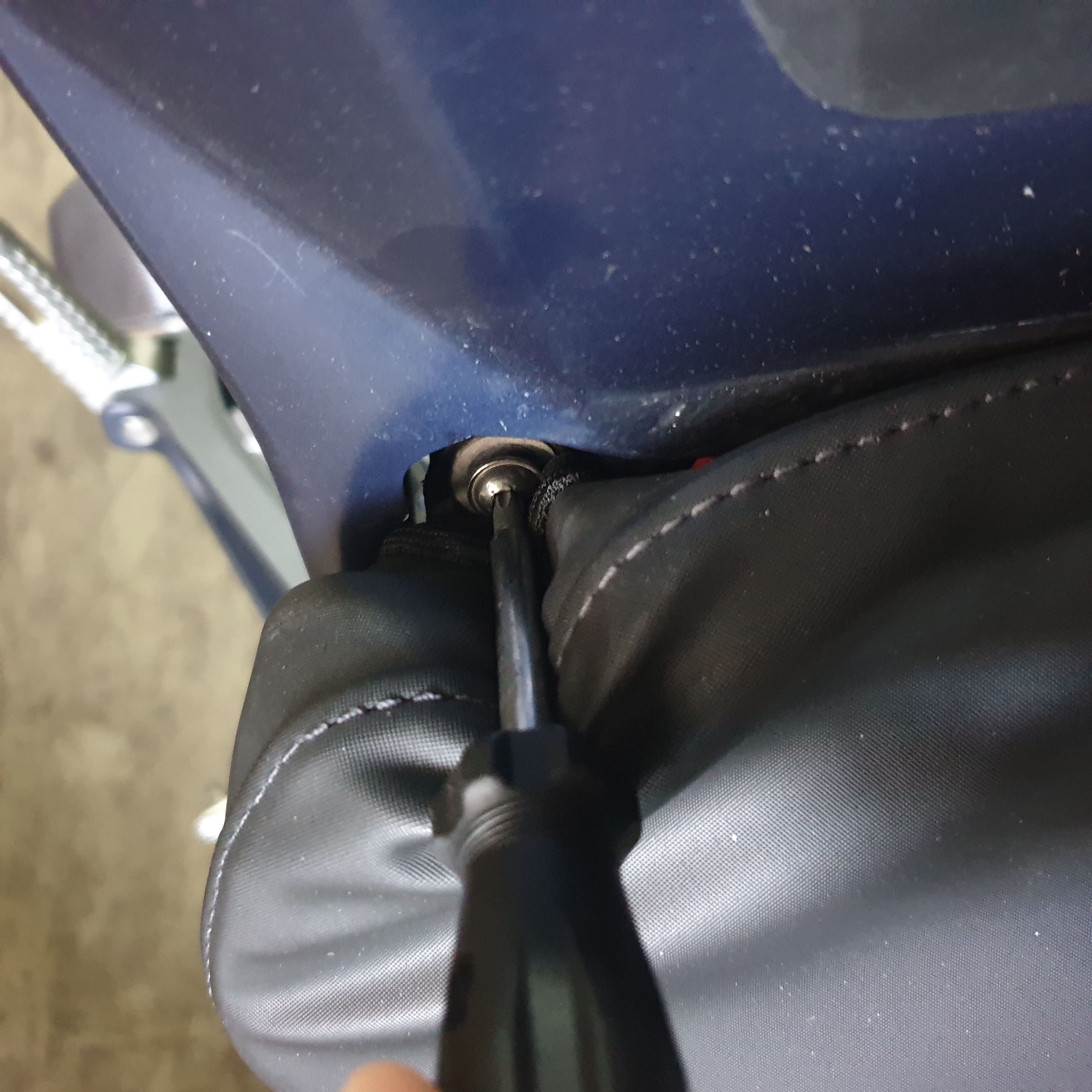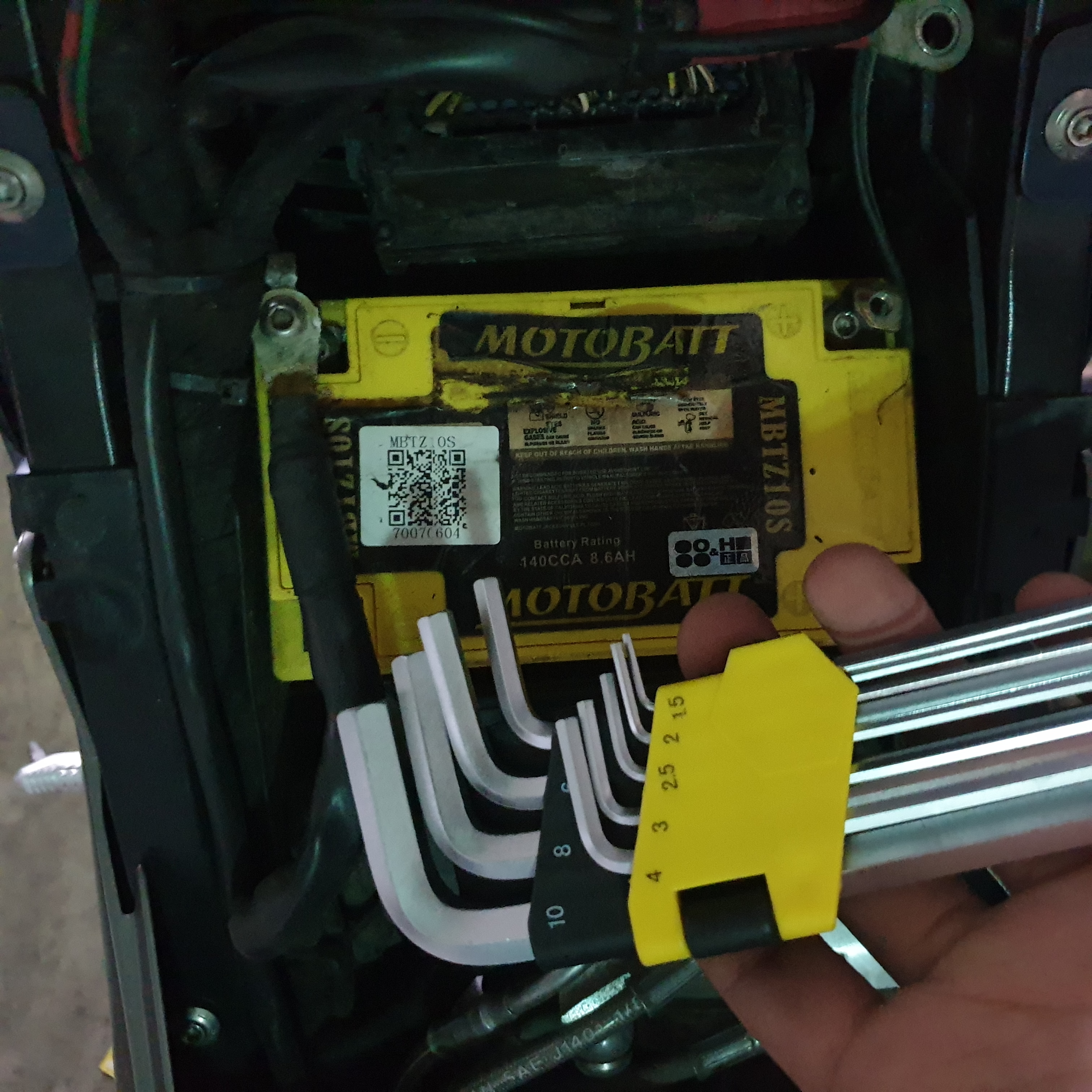 그래서 아무 생각 없이 내려가서 바이크 뒷 안장을 열었더니... 배터리에 체결된 육각 렌치가 없네? 기본적으로 제공되는 공구는 별나사를 풀 수 있는 렌치였다.