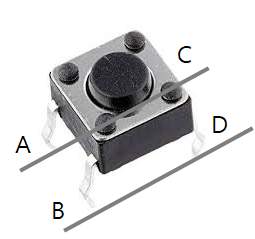 이 4개의 접점을 통해서 기존 버튼의 동작과 회로에 단단히 고정시킬 수 있게 된다. 일반적으로 한 면에 붙어 있는 2개의 핀(A, B 또는 C, D)들이 연결되지 않은 상태이다.
