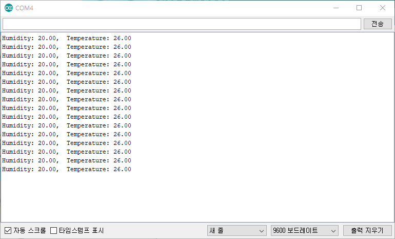 특이하게 DHT11은 3.3v ~ 5.5v 동작인데, 5V에 연결하니 센싱이 잘 안되서 3.3v 연결하였더니 정상동작 하였다.