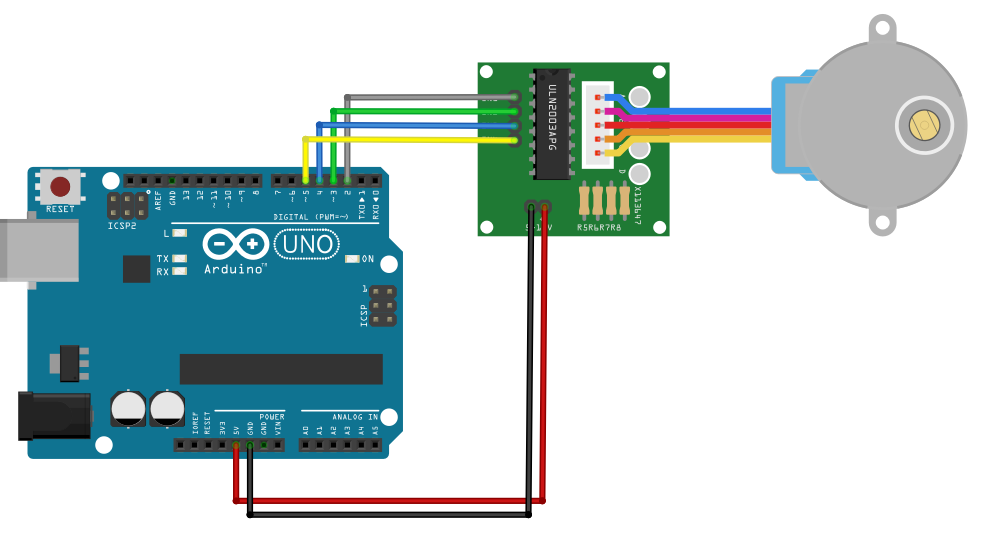 구동 방법은 ULN2003 데이터 시트를 참조하길 바란다. 이 포스팅에서는 구현되어 있는 Stepper 라이브러리를 이용하여 간단하게 동작시키는 방법을 설명한다.