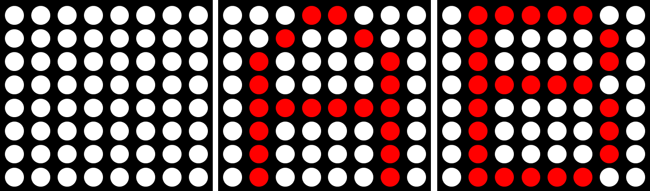 64개의 LED를 제어하기 위해서 행과 열이 8개의 LED에 +극과 -극으로 연결되어 있다. 마찬가지로 LED의 극성 연결에 따라서 A타입 B타입으로 나뉜다.