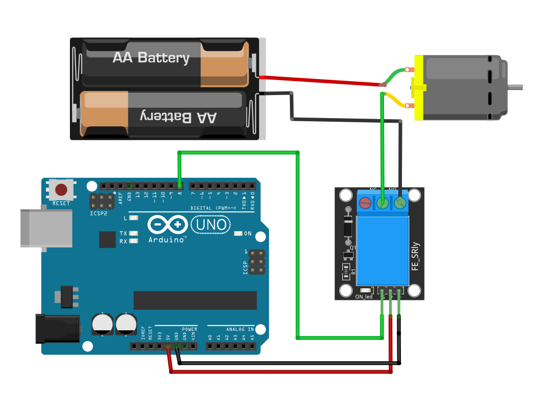// 릴레이 NO와 Common이 연결되어 모터가 동작한다.