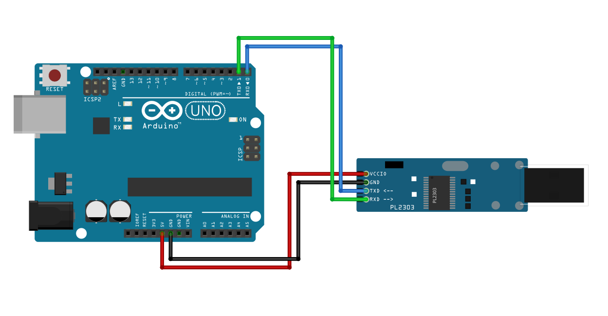 TX와 RX를 연결할 때 반드시 교차해서 연결해야 한다. Tx, Rx는 Transmit / Receive의 약어로 자신 기준으로 전달하는 선와 수신하는 선이라고 생각하면 된다.