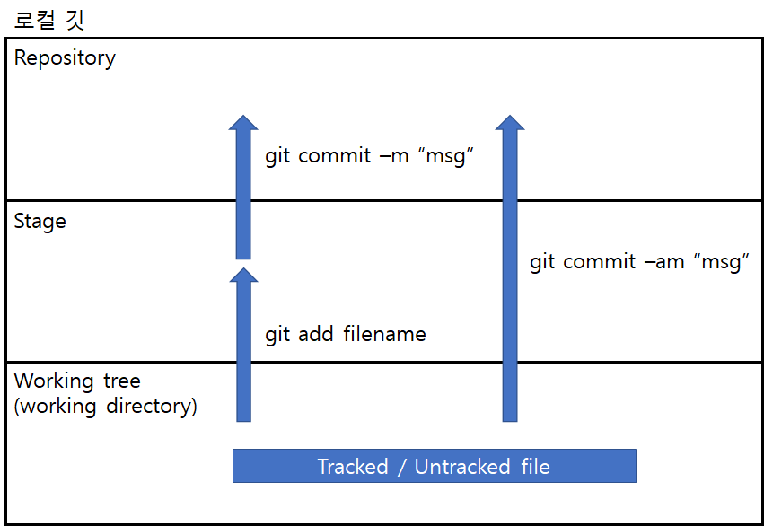 - 혹은 git commit -am "커밋메시지" 명령으로 git add와 commit을 동시에 수행한다.
