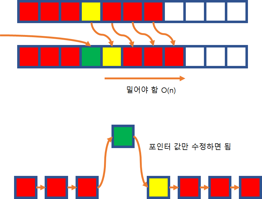 물론 장점만 있는 것은 아니다. 만약 정렬된 상태일 때 배열의 경우 binary search와 같은 기법으로 O(n)의 탐색 시간을 O(logn)까지 떨어트릴 수 있지만, linked list의 경우 full scan을 해야 한다.