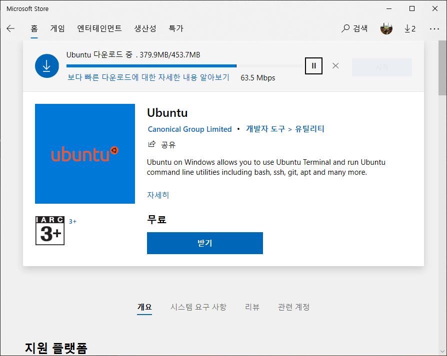 https://aka.ms/wslstore으로 이동하여 배포판을 설치해주자.