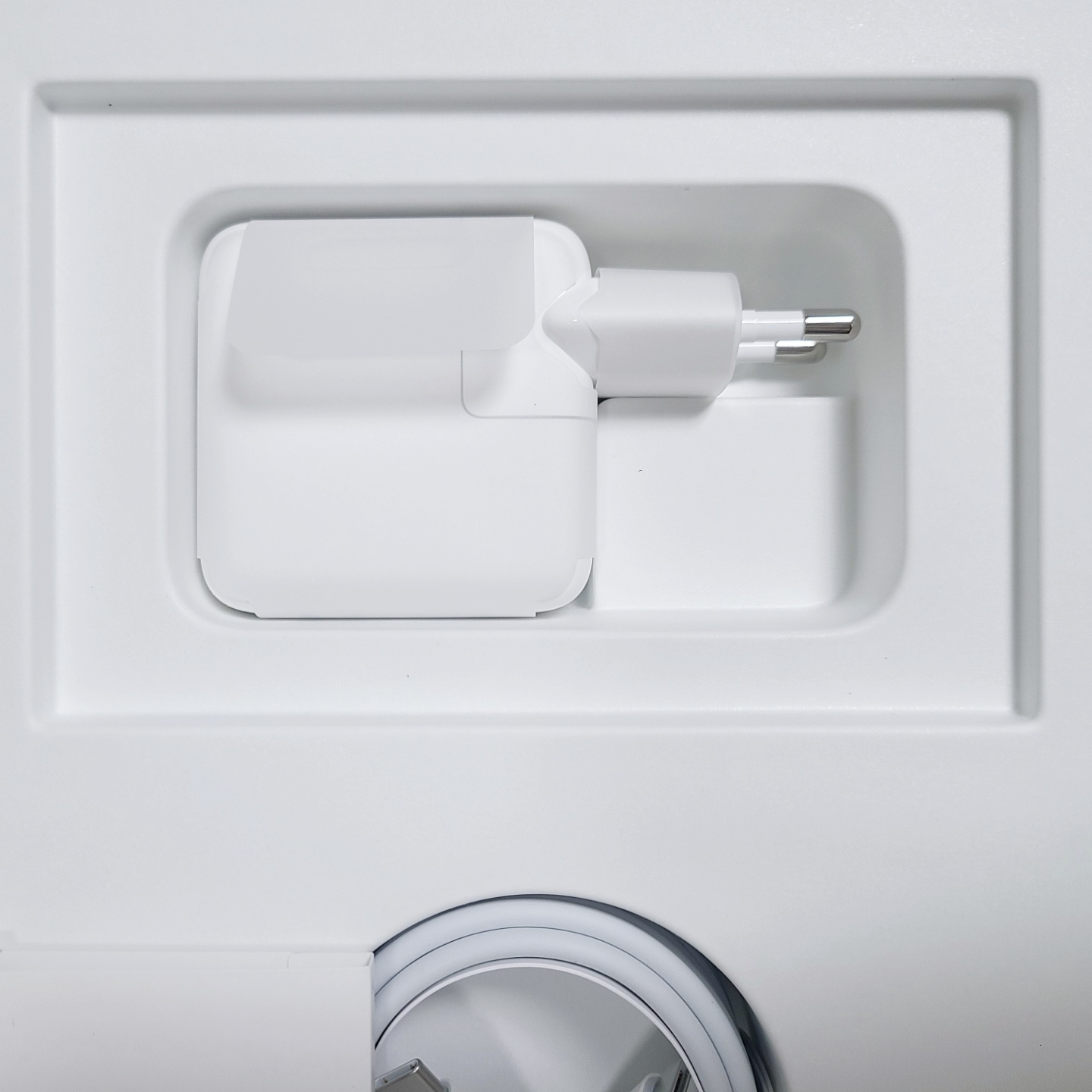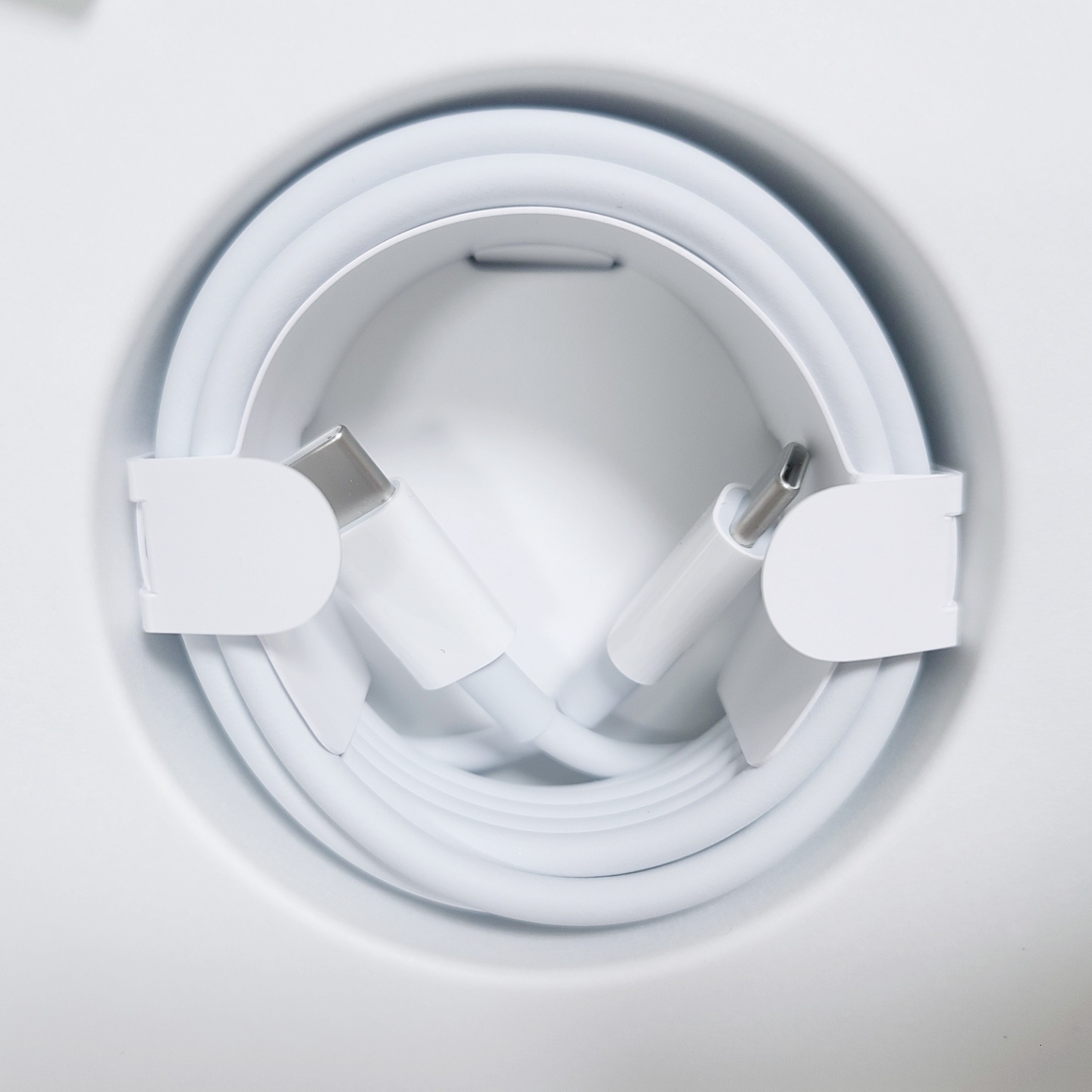 그냥 적당한 크기이다. 지금 쓰고 있는 맥북 프로 13인치의 60와트 충전기 보다 작지만 아이폰용 충전기보단 크다.