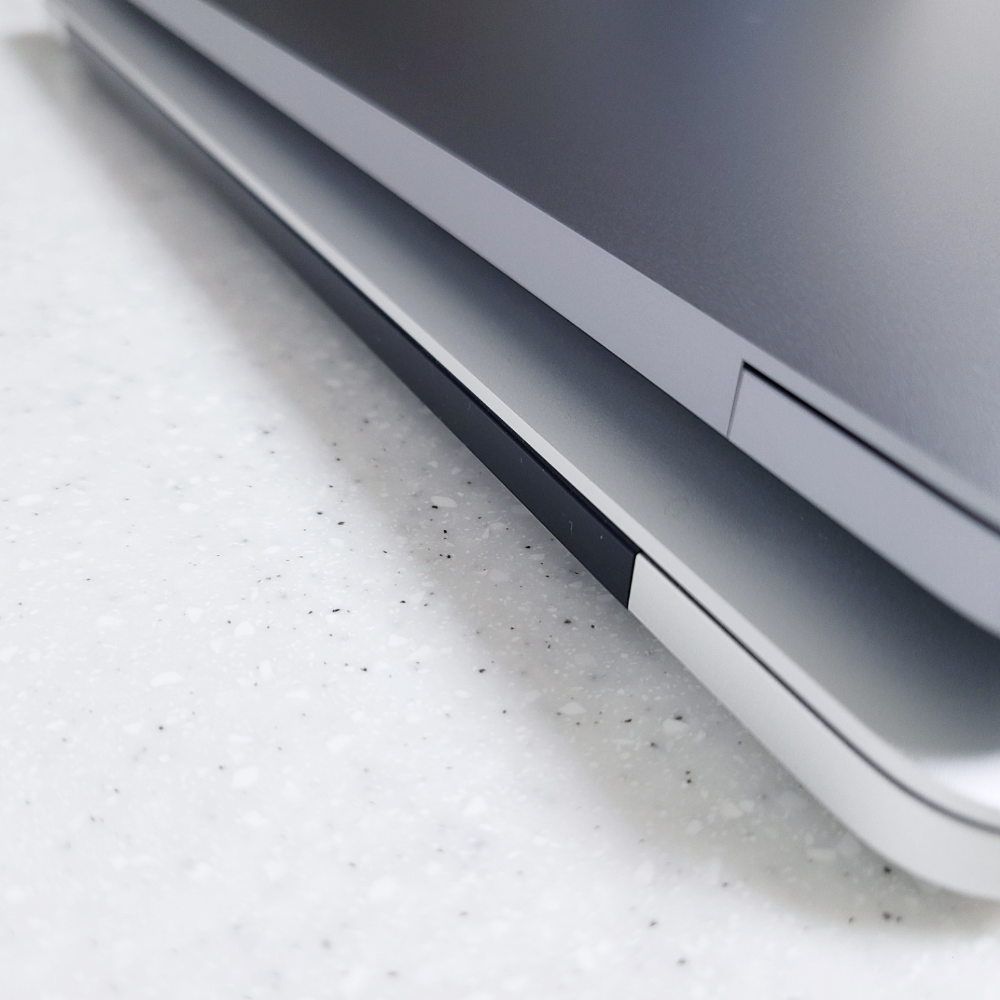 맨처음 맥북에어의 쉐입을 따라가고 있다. 예전 맥북 에어를 써보지 않아서 끝부분이 어떤지 모르겠지만 첫 인상으로는 전반적으로 그렇게 얇다는 생각은 안든다.