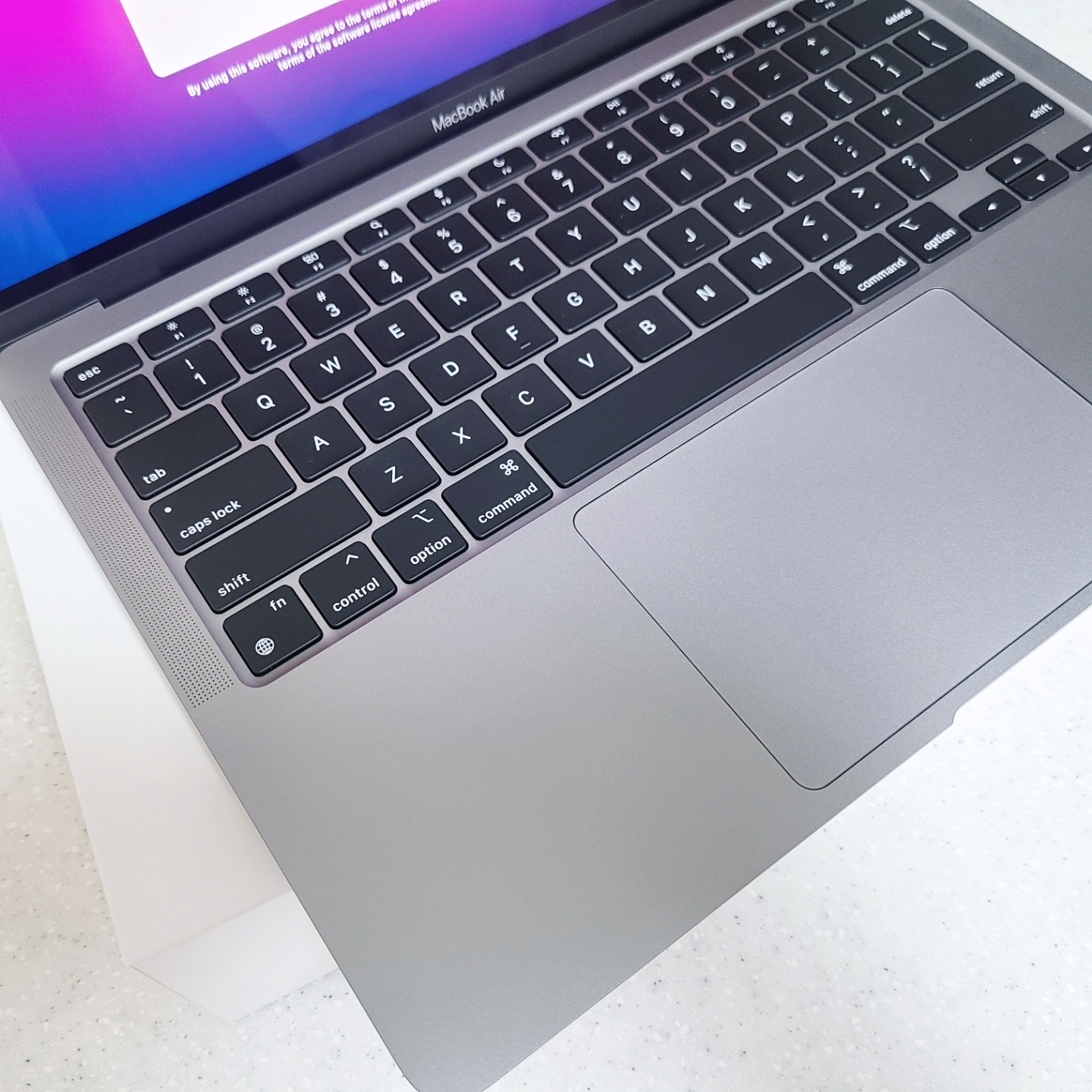 맥북 에어 m1의 제일 기본형 모델인 8GB 메모리, 256GB의 SSD 모델이다. m1이 들어간 랩톱 중에 제일 가성비가 넘치는 모델로 특정 프로그램을 돌려야 한다거나, 아니면 빡빡하게 사용하지 않는다면 8GB 메모리도 충분하다.