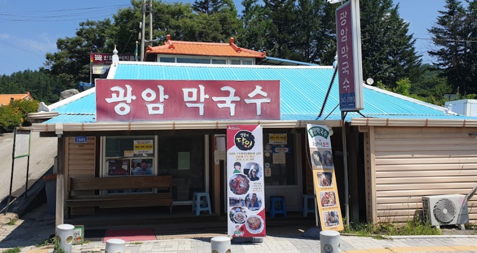 횡성에 위치한 광암막국수는 메밀 100% 면으로 유명하고, 그 옆에 용둔 막국수집도 있다. 일단 사람이 진짜 많고, 꽤나 오래전부터 유명한 맛집이다.