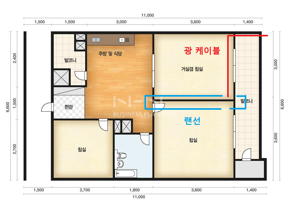 선은 총 2 pair가 들어있었고, 그중에 1개의 pair가 거실-침실간으로 연결되어 있었다.