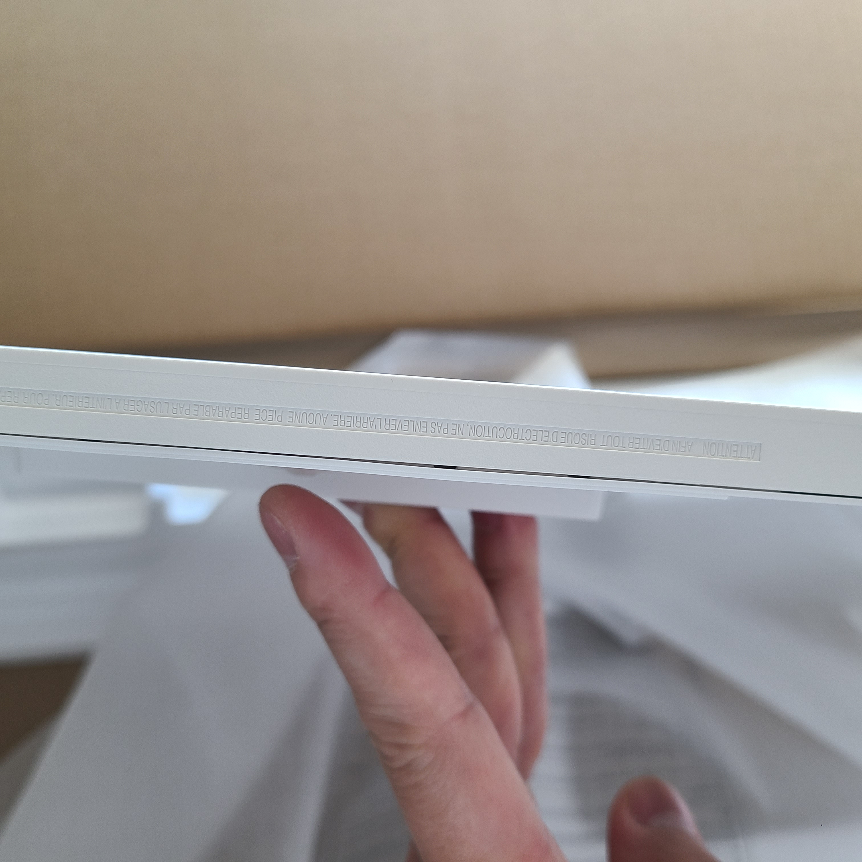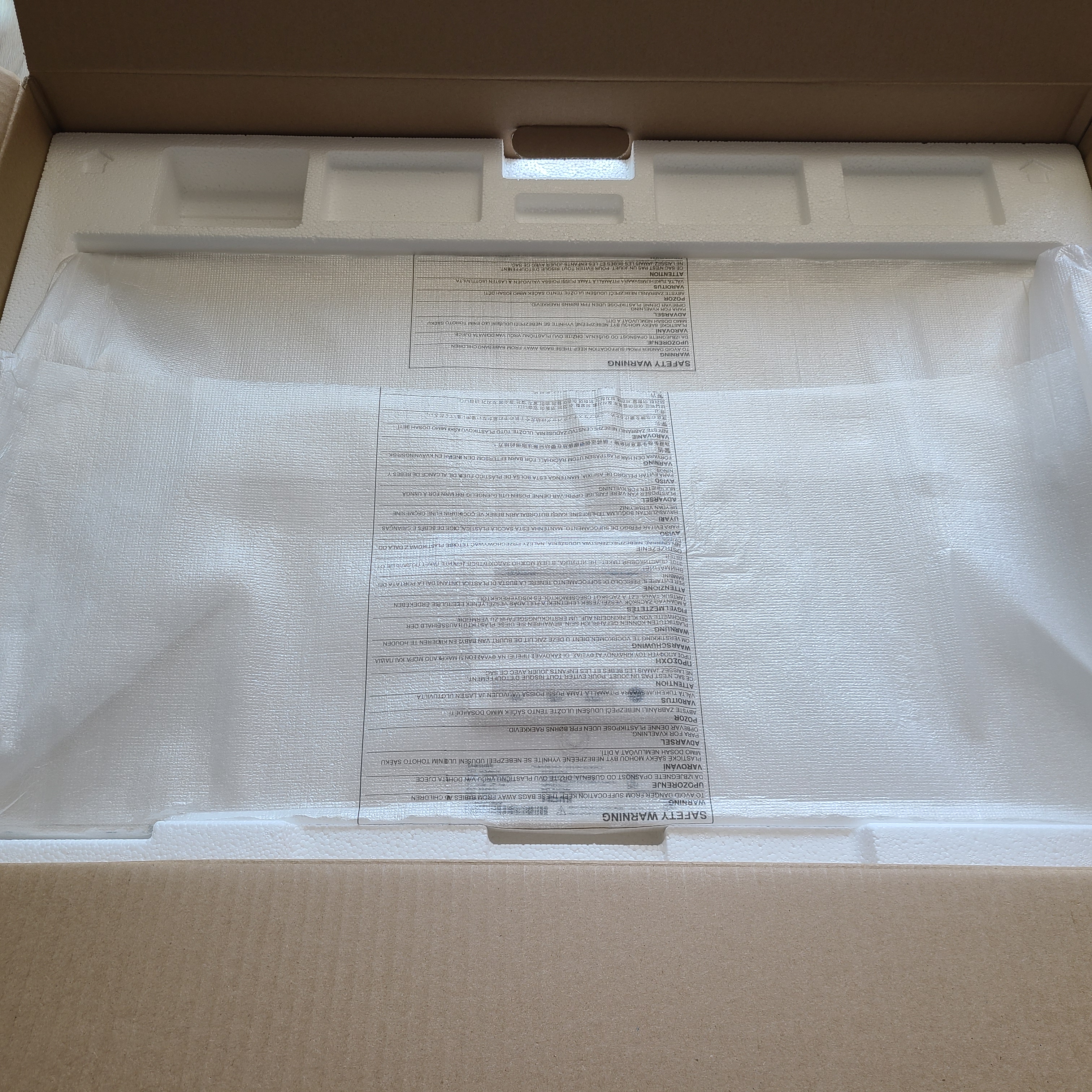 모니터 구성품을 빼고 상단 스티로폼을 뺴면 아래에 패널이 들어있다.