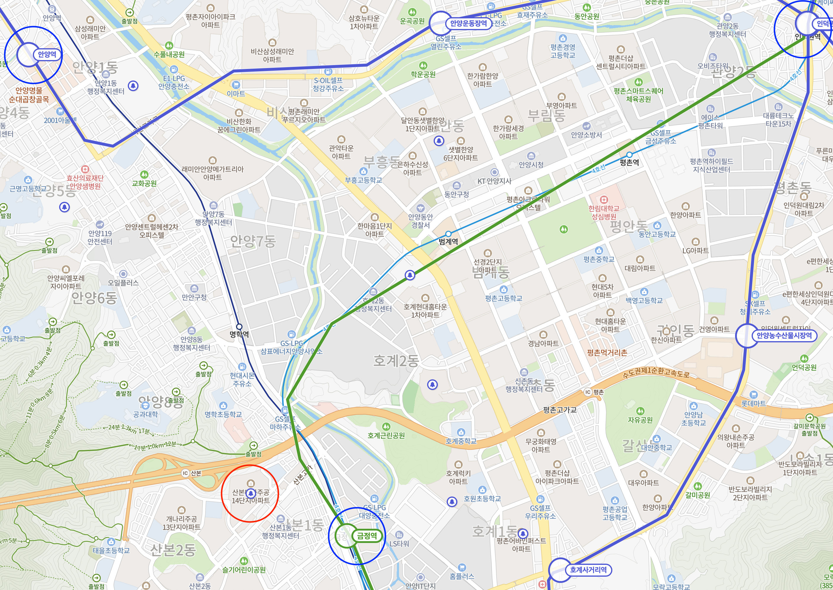 - 완전 평지면서 넓게 배치되어있는 안양의 역세 베드타운인 평촌이나 범계랑 가격이 크게 차이가 안남
