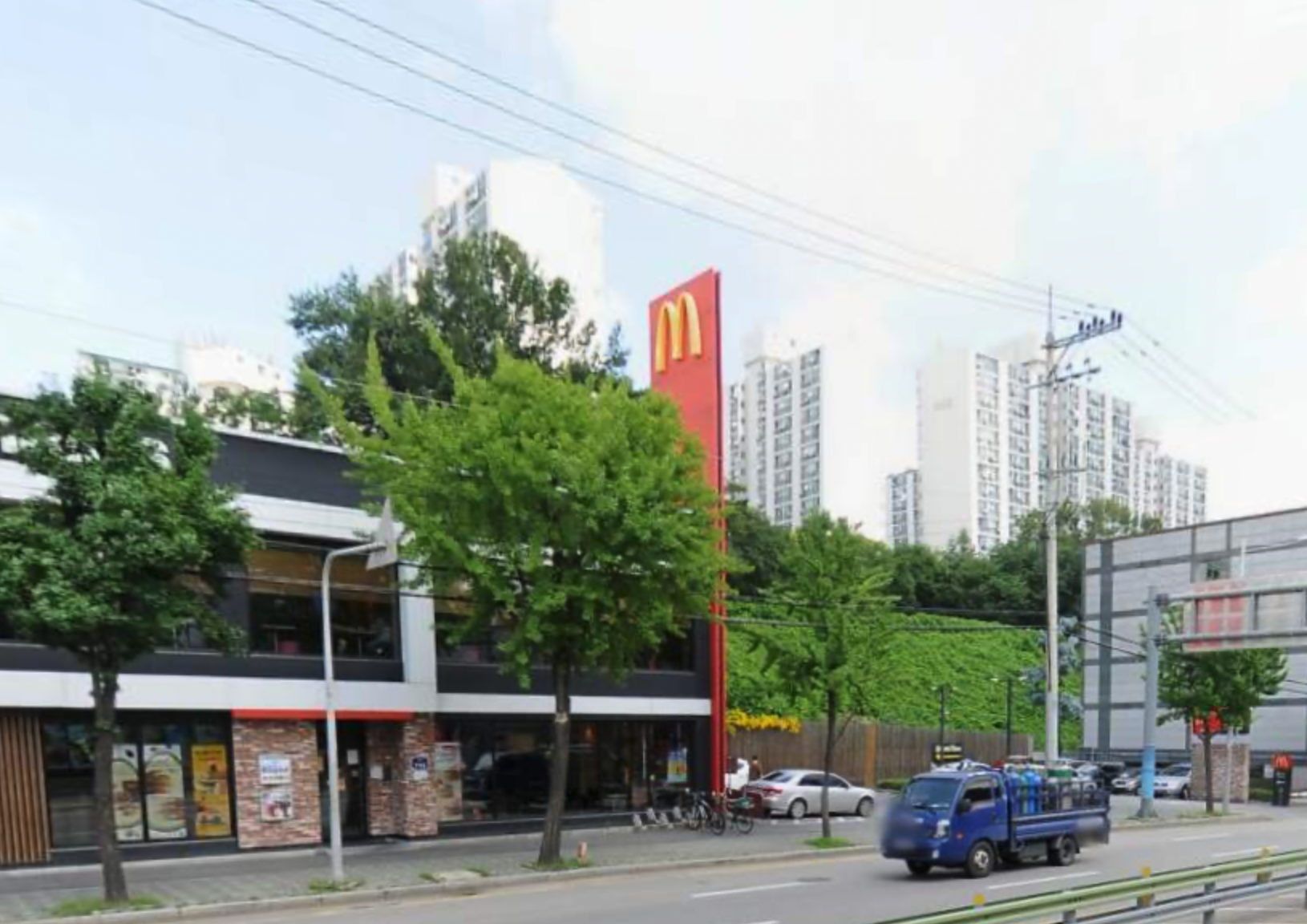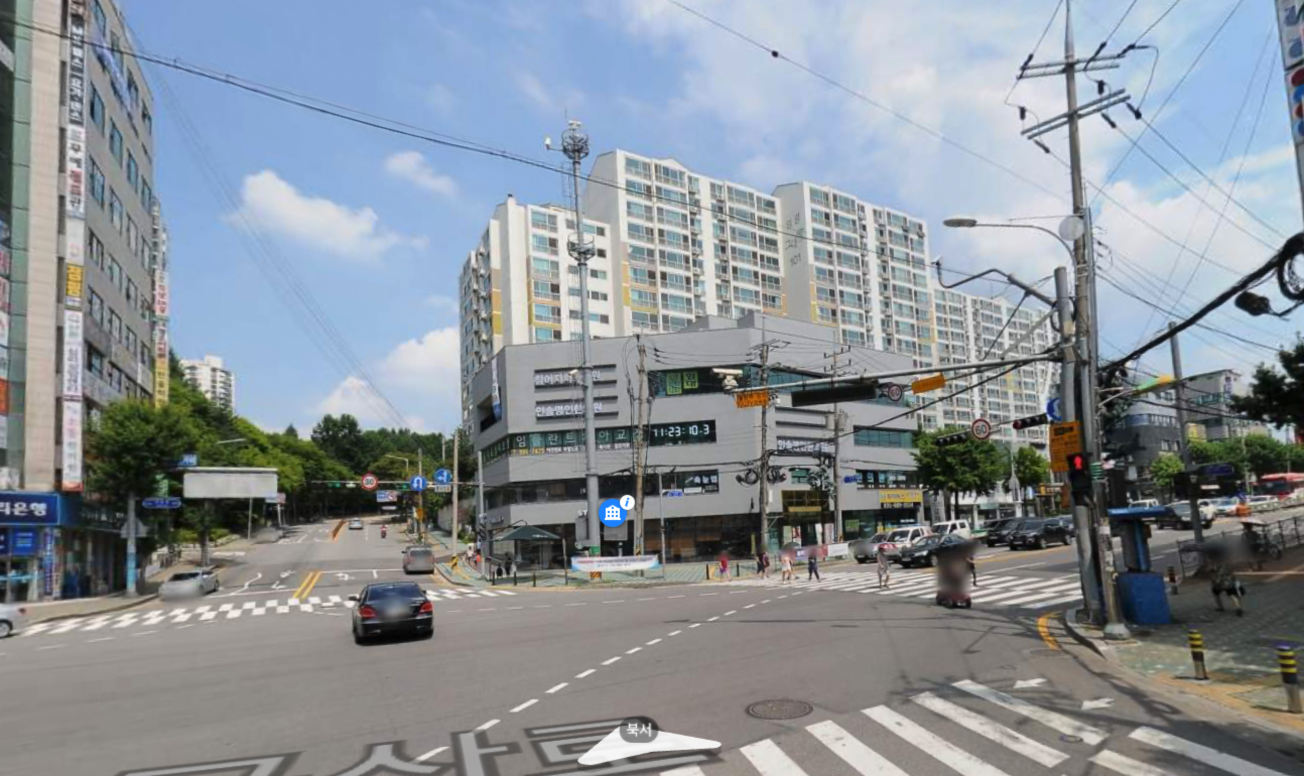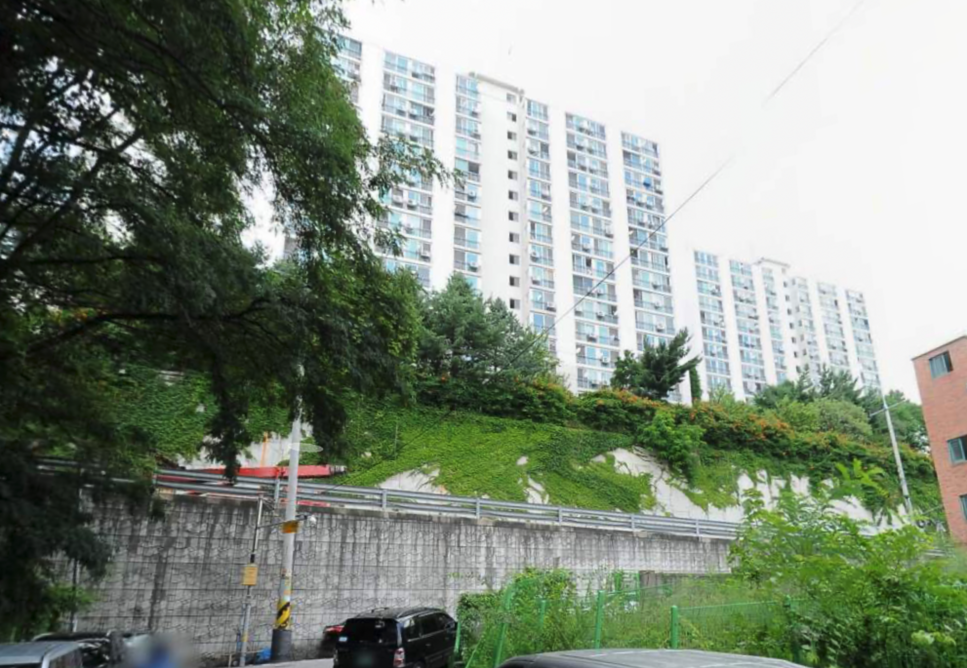 - 앞에 아파트가 버티고 있음, 현재 정문 위치에 아파트 하나가 떡하니 버티고 있음.